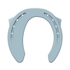 Available in left and right versions, the covering branch supports the side of the foot suffering from collateral digital desmitis on penetrable surfaces, with the support of the opposite branch, which is narrow and has a wedged boxing, to enhance the sinking effect on the healthy side. The branch is narrow and has a wedged boxing to facilitate the sinking of the side of the foot suffering from collateral bone injuries on penetrable surfaces, with the support of the opposite covering branch, to enhance the support effect on the healthy side. It is useful for horses who are intolerant to lateral and medial lifting. The covering branch is seated out on the upper inside surface to prevent sole pressures. The holes are punched in such a way that the nails can be driven into the wall with the right angle.