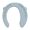 Available in left and right versions, the covering branch supports the side of the foot suffering from collateral digital desmitis on penetrable surfaces, with the support of the opposite branch, which is narrow and has a wedged boxing, to enhance the sinking effect on the healthy side. The branch is narrow and has a wedged boxing to facilitate the sinking of the side of the foot suffering from collateral bone injuries on penetrable surfaces, with the support of the opposite covering branch, to enhance the support effect on the healthy side. It is useful for horses who are intolerant to lateral and medial lifting. The covering branch is seated out on the upper inside surface to prevent sole pressures. The holes are punched in such a way that the nails can be driven into the wall with the right angle.