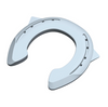 The shoe has a mild rolled design on the ground surface of the shoe allowing break-over in all directions. The shoe is designed to reduce laminar stress and white line distortions and to reduce asymmetric pressures on the joints and tensions on the collateral ligaments. The 'onion' shaped heels provide caudal support and allow for the drilling of studs. Available unclipped.